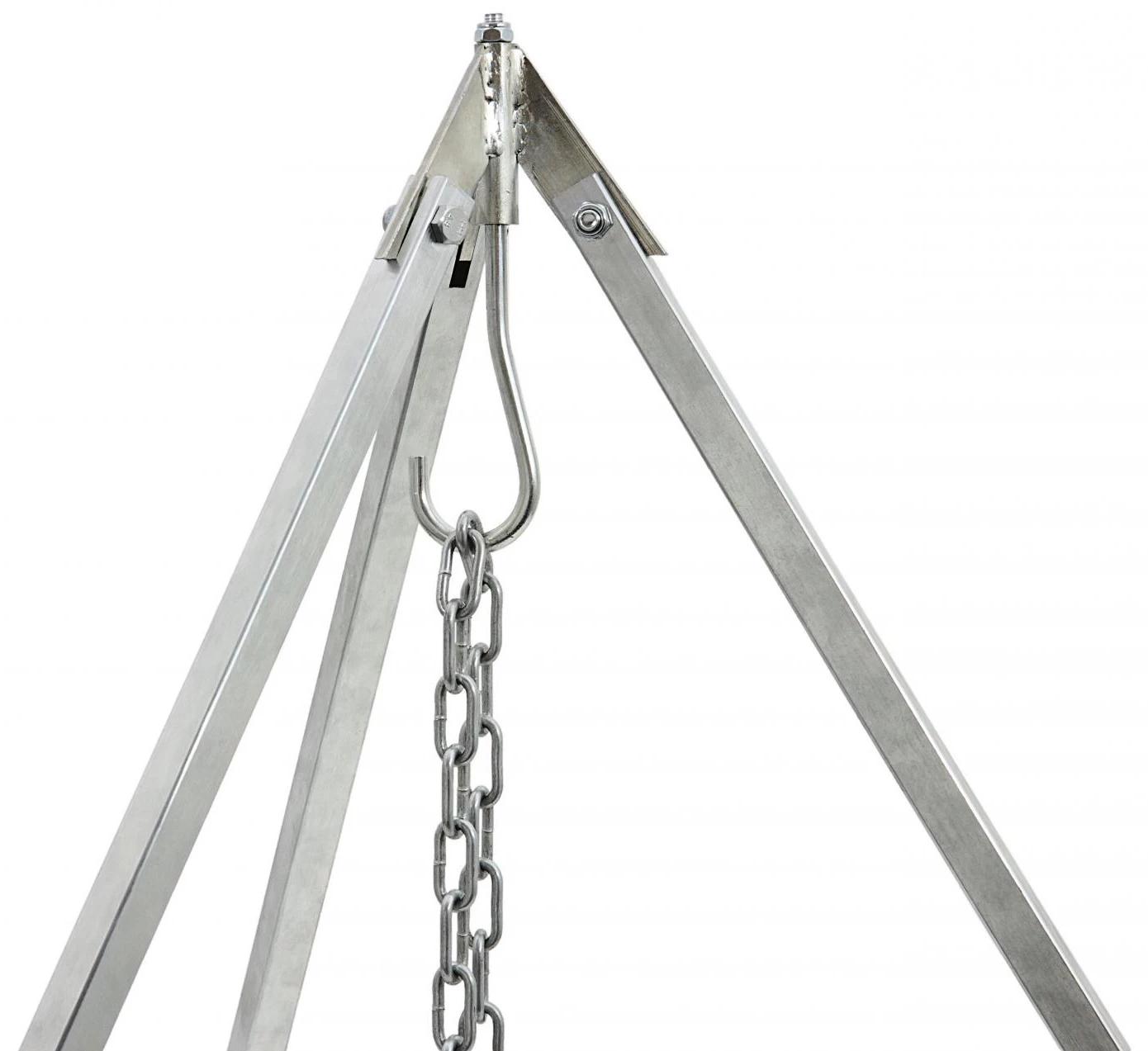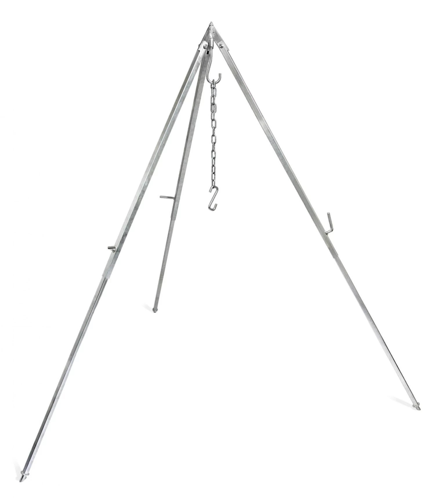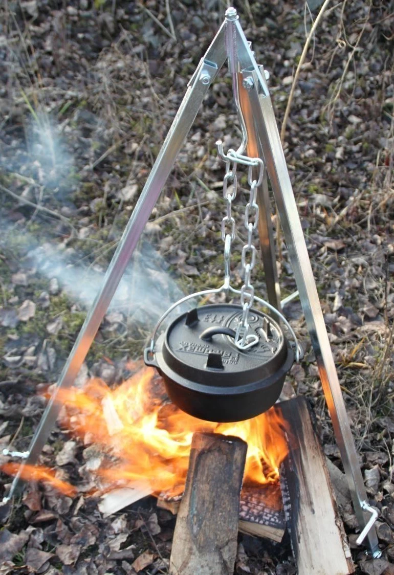 Mit dem Petromax Dreibein wird die Outdoor-Küche perfektioniert. An dem Haken des robusten Dreibeins lässt sich ein Feuertopf sicher und einfach aufhängen. Durch die variable Kette kann der Abstand zwischen Topf oder Kessel und dem Feuer jederzeit reguliert werden. Die abgeschrägten Füße sorgen auf den verschiedensten Böden für einen sicheren Stand des Dreibeins. Zudem ist jedes Bein einzeln und stufenlos höhenverstellbar, sodass sich Unebenheiten des Untergrunds mühelos ausgleichen lassen.