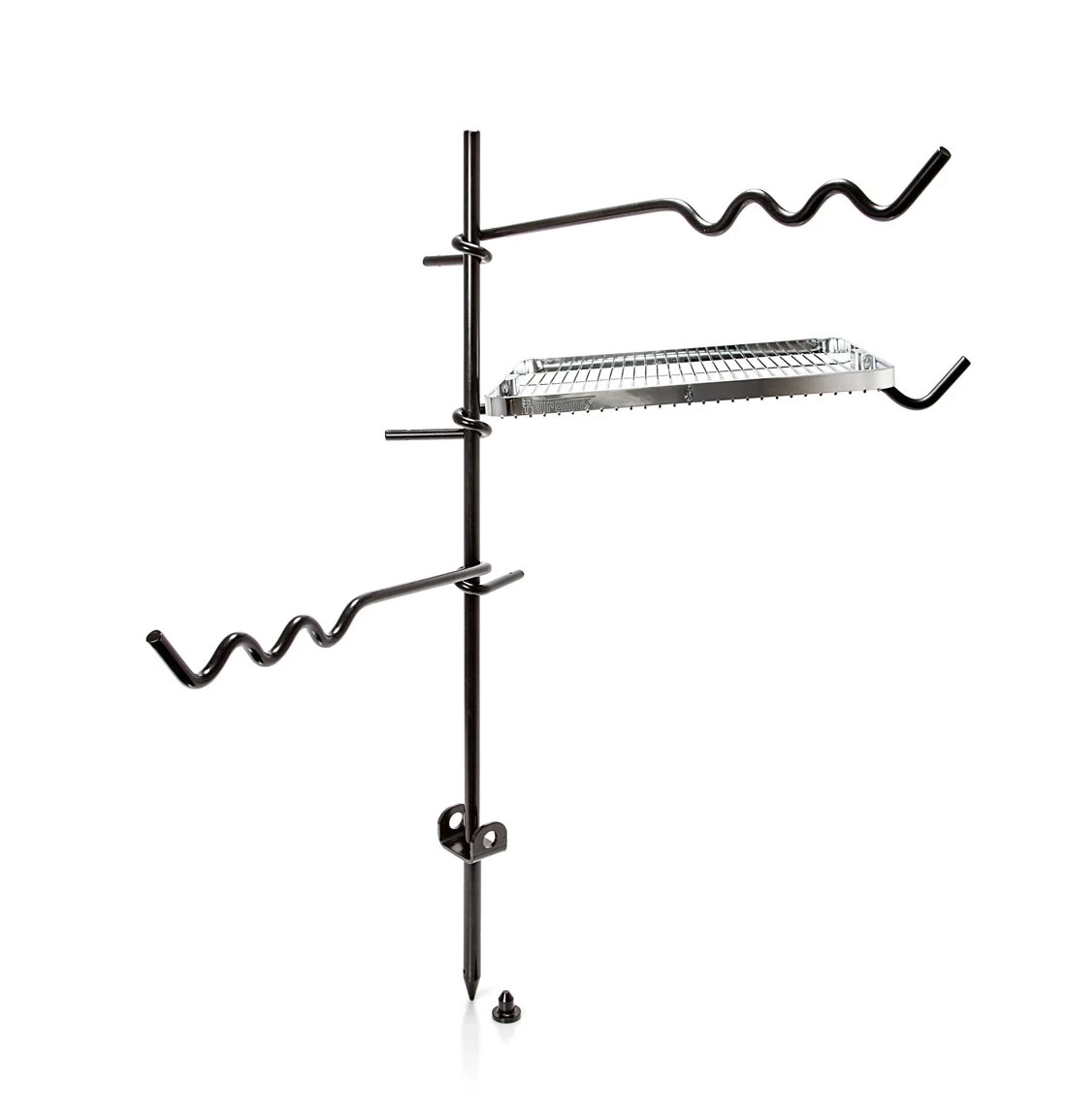 Der Feueranker verfügt über eine Hauptstange, die im Boden fixiert wird, und drei Arme, die du individuell auf den Feueranker aufstecken und in Höhe sowie Ausrichtung variieren kannst. Zwei der Arme haben Einkerbungen an den Enden, an denen du deine Kochutensilien anhängen kannst. Der dritte Arm verfügt über einen Grillrost sowie eine zusätzliche Einkerbung für deine Grillhandschuhe oder die Grill- und Kohlenzange. Auf dem großzügigen Grillrost mit erhöhten Rand finden Würstchen, Gemüsespieße und Co. sicher Platz.