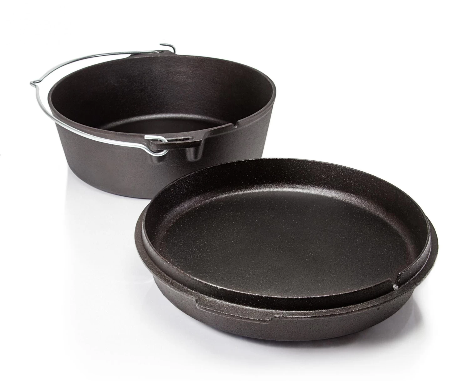 - Deckel des Feuertopfs auch als Pfanne oder Servierteller einsetzbar
