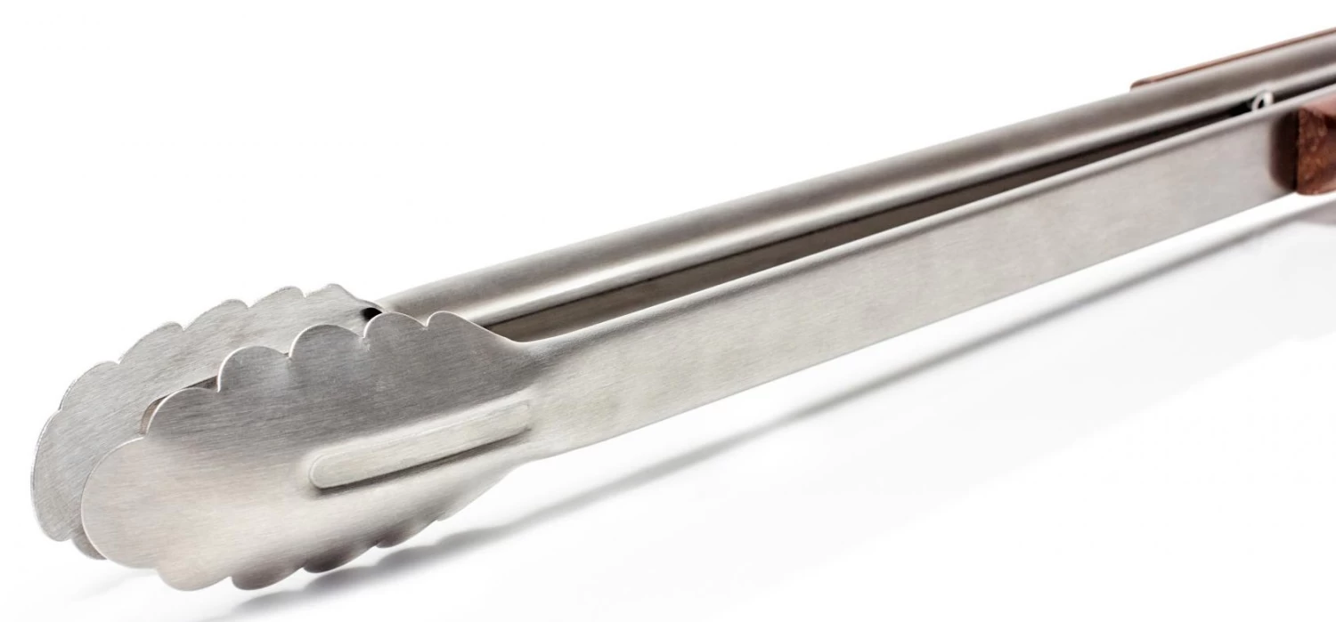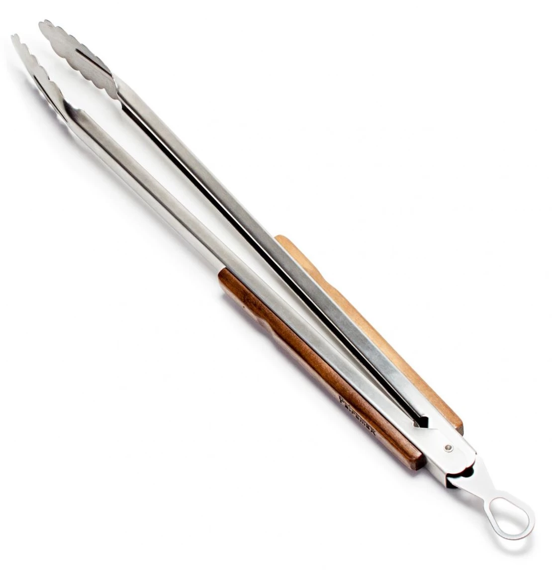 Grill- und Kohlenzange – aus gebürstetem Edelstahl mit edlem Holzgriff ist ein unverzichtbares Utensil zum Grillen und Draußenkochen. Der gewölbte Zangenkopf garantiert einfaches Greifen und wunschgemäßes Platzieren von Grillgut, Kohlen und Briketts. Der praktische Verschlussmechanismus ermöglicht die platzsparende Aufbewahrung der Zange. Dank der zusätzlichen Öse kann sie auch in Schrank oder an einem Haken aufgehängt werden.