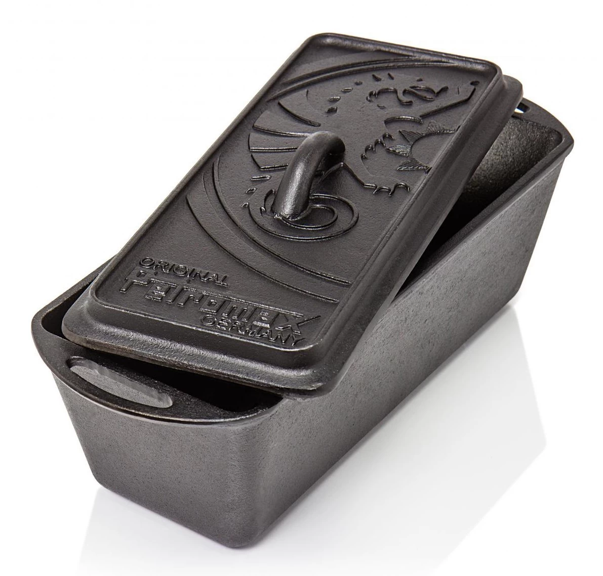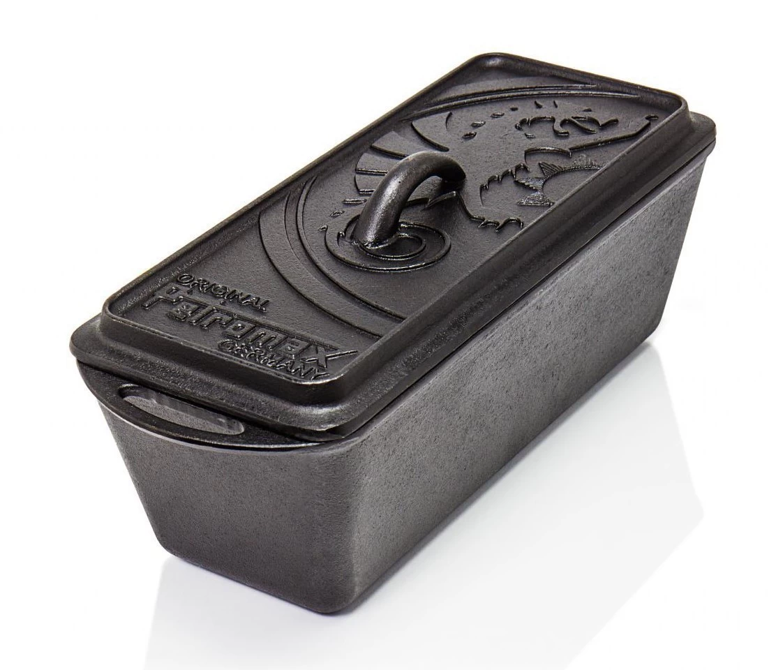 Kastenform mit Deckel k4 – perfekt für Brot, Kuchen, Auflauf und Co. geeignet. Der Deckel der gusseisernen Form lässt sich beim Draußenkochen mit Glut oder Briketts bestücken, sodass eine hervorragende Rundumwärme entsteht, wie bei einem Feuertopf. Im Backofen funktioniert die Guss-Kastenform als Bräter oder für leckeren Nachtisch.