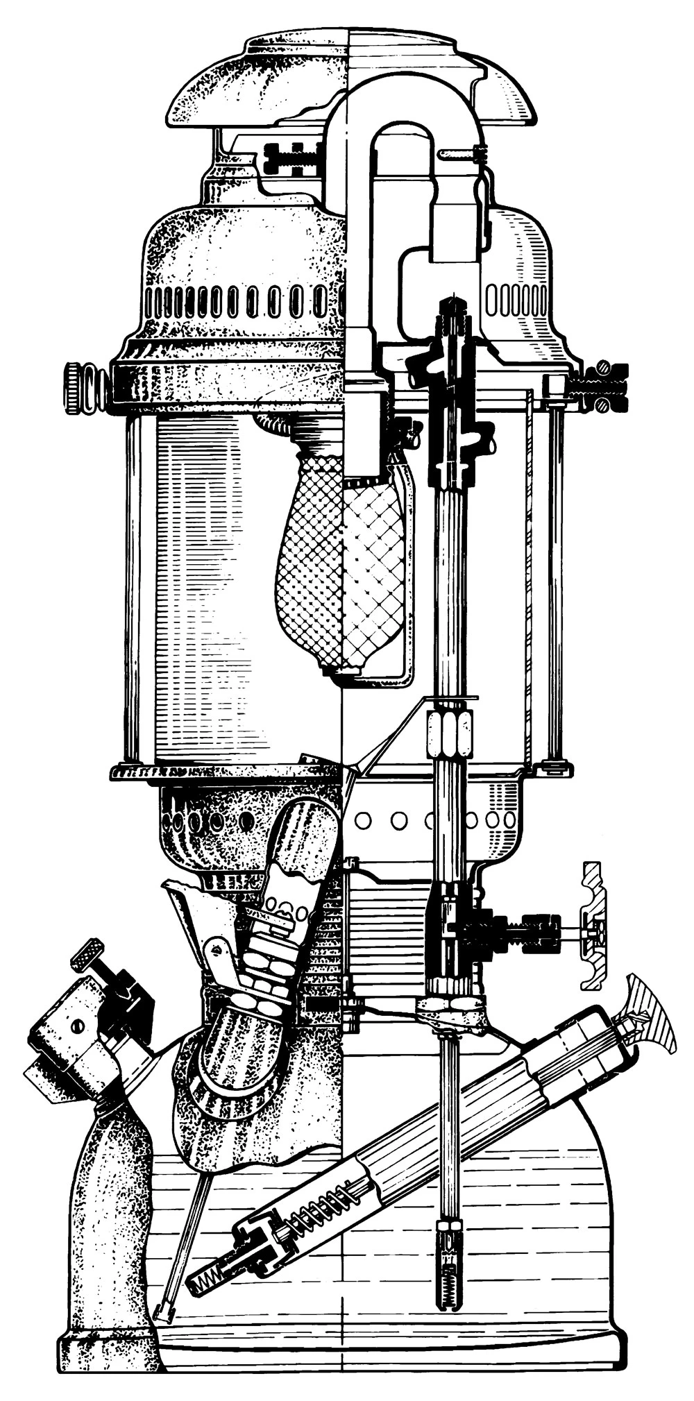 Die hervorragende Lichtleistung der Petromax Lampe kommt durch ein einfaches, aber faszinierendes Prinzip zustande: Petroleum wird unter Druck in einen Vergaser geleitet, der dadurch verdampfende Brennstoff reagiert in einem mit Leuchtsalzen imprägnierten Glühstrumpf zu einem hellen, warmen Licht. Damit dieses Prinzip einwandfrei funktioniert, wird die aus über 200 Einzelteilen bestehende Lampe nach wie vor in Handarbeit zusammengesetzt. Die lange Tradition der Petromax gründet auf ihrer hohen Qualität und der damit verbundenen Langlebigkeit.