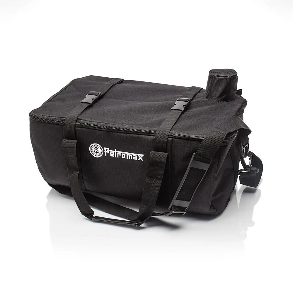 There is a spacious zippered pocket in the lid of the bag: accessories or small parts such as Petromax fire kit or the ash trap can be stored here. The fact that the bag is made for the Loki is also evident where the bag lid wraps around the stovepipe base. The bag is also embroidered with the Petromax logo, which has always stood for excellent quality.