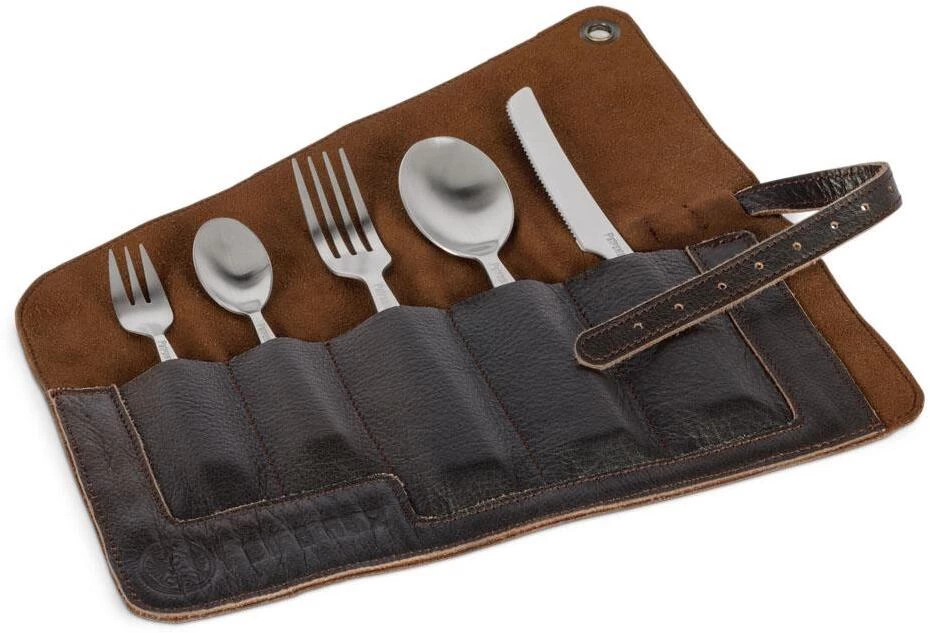 - zusammenrollbare Bestecktasche aus Leder für das Petromax Camping Besteck
