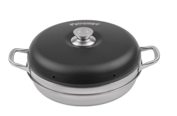 Der Petromax Camping Backofen vereint alle guten Eigenschaften eines herkömmlichen Ofens mit der Abenteuerlust des Draußen-Kochens: Er ermöglicht jedes Ofengericht auf der Flamme des Gastischs, des Camper-Herds oder über der Glut.