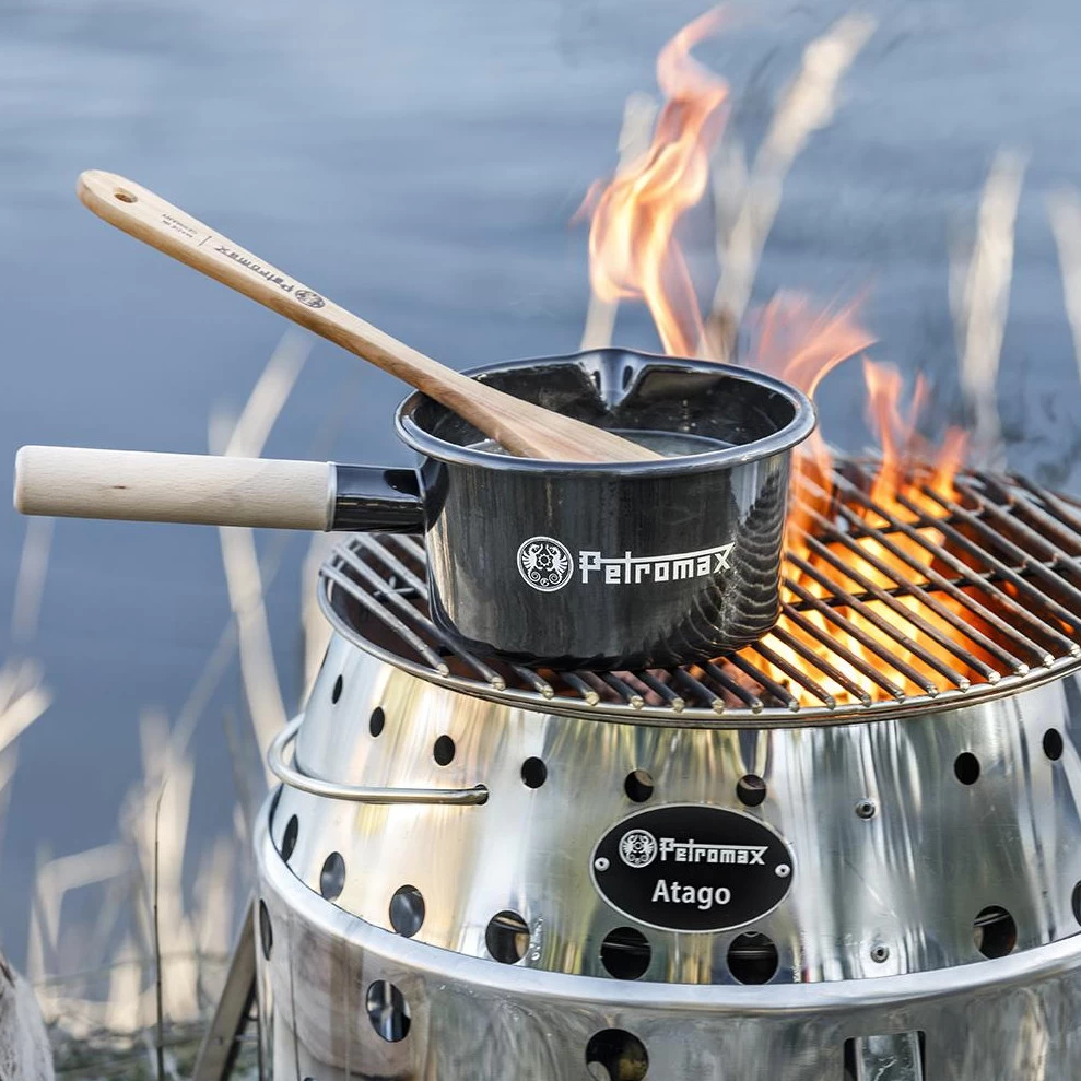 Mit dem Petromax Emaille Stieltopf bekommt das Kochen nicht nur einen nostalgischen Charakter, sondern geht auch noch leicht von der Hand. Bei Streifzügen durch die Natur oder beim Campen: Die robuste Kochausrüstung aus Emaille ist durch ihr geringes Eigengewicht ein idealer Begleiter. Der Holzstiel dient dabei als ein natürlicher Hitzeschutz und ermöglicht das Hantieren über dem Feuer. So gelingen schnelle Sattmacher im Handumdrehen.