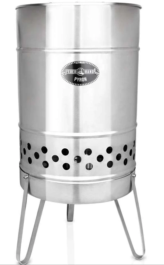 Die besondere Konstruktion mit dem ausgefeilten Luftzufuhrsystem der Pyron Feuertonne ermöglicht dank Kamineffekt und Holzvergaserprinzip eine äußerst effektive und nahezu rauchfreie Verbrennung. Dies ist beispielsweise für den Genuss von Stockbrot, Marshmallows oder Würstchen am offenen Feuer besonders von Vorteil. Auf dem Kohlerost kann das Feuerholz einfach platziert werden und auch Nachlegen ist so jederzeit möglich. Die leicht zu entleerende Ascheschale fängt die Brennrückstände zuverlässig auf.