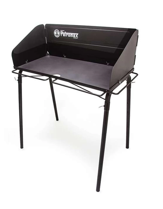 Bequemes Kochen im Freien Auf dem stabilen und belastbaren Stahltisch fe90 können bei einer Arbeitsfläche von 45 x 90 cm problemlos bis zu drei kleinere Feuertöpfe, je nach Größe, aufgestellt werden. Die Arbeitshöhe von 87 cm garantiert bequemes und rückenschonendes Hantieren. Der großzügig bemessene, hohe Windschutz sorgt dafür auch im Freien energie- und kohleeffizient zu kochen.