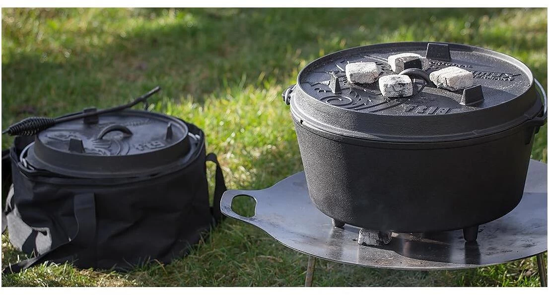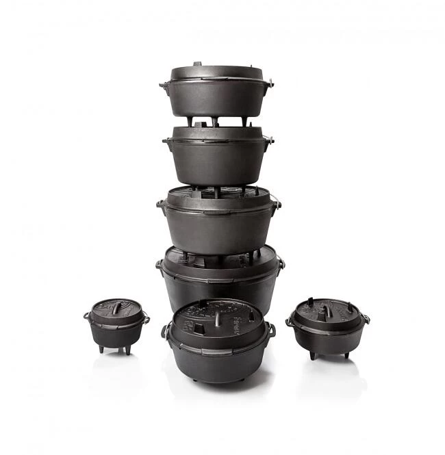 Die Zubereitung von Fleisch, Fisch und Gemüse über dem offenen Feuer, oder auch im heimischen Backofen kann so einfach sein. Mit einem sogenannten Dutch Oven garen Speisen sehr schonend im eigenen Saft. Er ist prima geeignet für das Kochen beim Reisen, Camping oder im heimischen Garten. Den FT18 gibt es mit (Dutch Oven) oder ohne Standfüße.