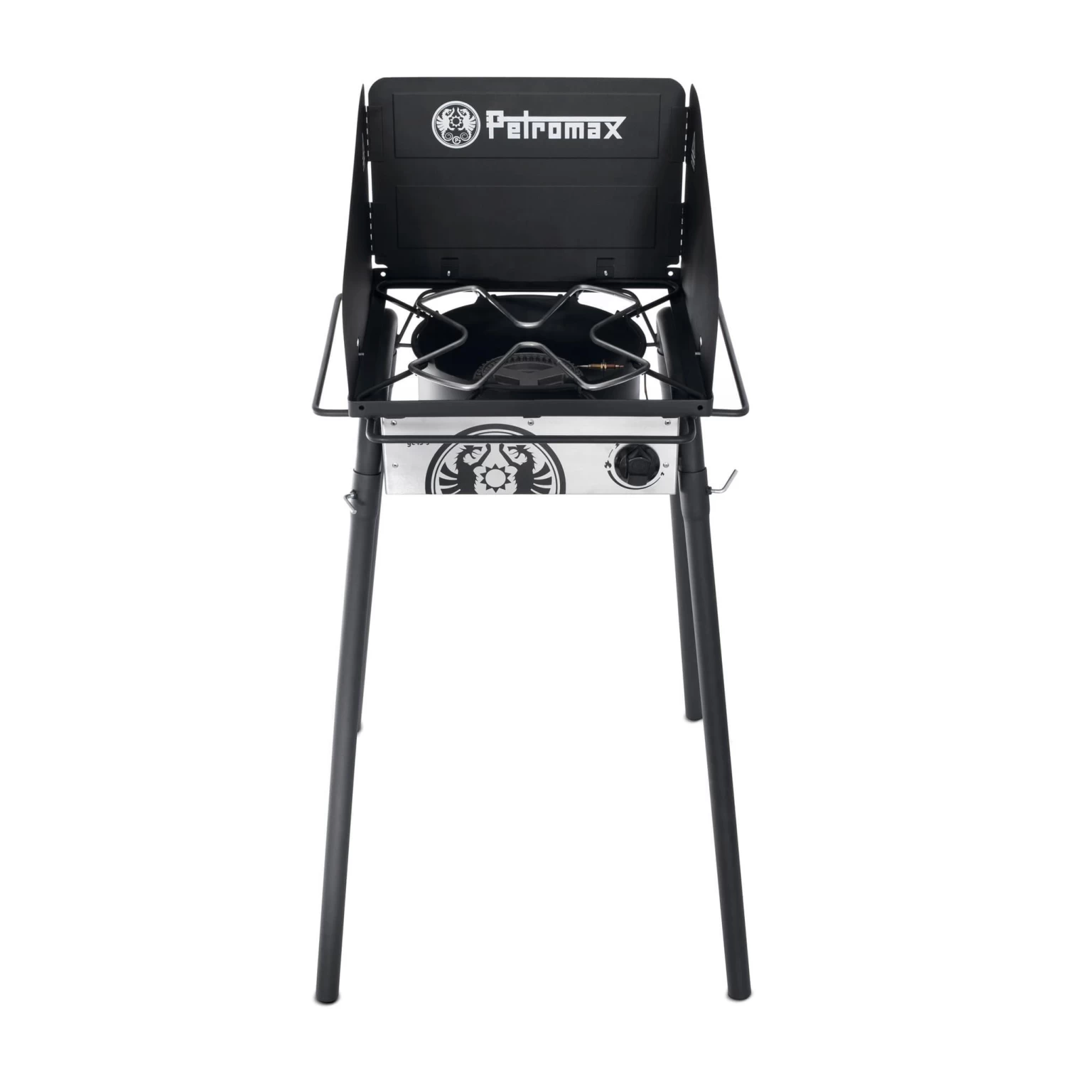 Der Petromax Gastisch ist die ideale Lösung für schnelle Kochergebnisse, auch dort, wo offenes Feuer nicht erlaubt ist. Mit einem Knopfdruck entfacht konzentrierte Flammenkraft, die dein Kochgeschirr richtig einheizt. Mit dem leistungsstarken 5 kW Brenner wird die Wärmeverteilung deiner gusseisernen Pfannen und Töpfe optimal unterstützt. Ab der Größe ft3 finden alle Feuertopfmodelle darauf Platz. Über das Bedienelement kannst du die Flammenkraft zu jeder Zeit stufenlos regulieren. Durch die Traglast von 80 kg sind deinen Kochvorhaben nahezu keine Grenzen gesetzt. Mit einer Arbeitshöhe von 87 cm bringst du dabei Komfort in deine Draußen-Küche und an den umlaufenden Haltebügeln kannst du bequem Grillzange, Handschuhe und Geschirrhandtuch griffbereit aufhängen. Der Petromax Gastisch bringt nicht nur schnelle, sondern auch sichere Kocherlebnisse. Die integrierte Flammenüberwachung sorgt für eine Unterbrechung der Gaszufuhr, sollte dein Feuer versehentlich erlöschen. Dank der separat montierbaren Füße und des abnehmbaren Windschutzes lässt sich der Gastisch platzsparend verstauen und ideal ins Abenteuer befördern. Die Lieferung erfolgt mit passendem Adapter für die im jeweiligen Bestimmungsland zu erwerbende Anschlussgarnitur mit vorgeschriebenem Druckminderer.