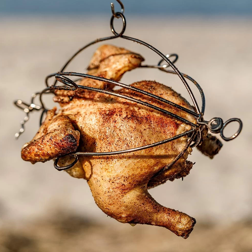 Der Petromax Geflügel-Grillkorb macht aus deinem Grill-Abenteuer ein ursprüngliches Erlebnis mit dem Extra an Aroma und unvergleichbar rauchiger Note. Mühelos lassen sich Hähnchen, Poularden, Lammkeulen oder andere Fleischspezialitäten darin knusprig grillen. Durch das Fixieren der beiden Korbhälften wird der Inhalt fest eingespannt und direkt über dem offenen Feuer gegart. Dabei trägt der Drehwirbel zu einem gleichmäßigen Garergebnis bei und die Gliederkette, in die der Grillkorb eingehängt werden kann, ermöglicht dir eine nahezu stufenlose Temperaturregulierung. Durch die insgesamt 8 Einhängeösen profitierst du von einer 360°-Bräune. So wird das rustikale Brathähnchen-Grillen bei voller Flammenkraft zu einem unvergesslichen Erlebnis mit großem Erfolg: Die Haut wird rundum knusprig und das Fleisch besonders zart und aromatisch.
