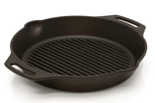 Die Petromax Grill-Feuerpfanne aus Gusseisen ist unentbehrlich für das Zubereiten von Fleisch, Gemüse und Co. mit dem besonderen Grillaroma. Ob über offenem Feuer oder in der heimischen Küche – die Pfanne ist für Hobbyköche und Profis bestens geeignet. Die Rillen am Pfannenboden geben dem Bratgut nicht nur das typische Muster wie frisch vom Grillrost, sondern ermöglichen auch besonders fettarmes und gesundes Braten. Gusseisen – langlebig und grillstark Gusseisen besticht durch seine Materialeigenschaften: Die Grill- Feuerpfanne verteilt die Garhitze gleichmäßig und speichert sie lange. Sie ist einfach zu reinigen und zu pflegen. Dank der vorbehandelten Oberfläche (seasoned finish) ist die langlebige, robuste Pfanne sofort einsatzbereit. Mit jedem Bratvorgang verbessert sich die wertvolle Patina, die auch für den natürlichen Antihafteffekt sorgt. In zwei Varianten auf allen Kochstellen Die Grill-Feuerpfanne ist sowohl für die Verwendung im Freien auf Lagerfeuer, Grill und Co. als auch drinnen für alle Herdarten sowie für den Backofen geeignet. Die gp30h mit zwei Henkeln lässt sich einfach handhaben und ist besonders gut für den Backofen oder Kugelgrill zu verwenden. Die Grill-Feuerpfannen sind in zwei Größen und je zwei Ausführungen erhältlich – mit Stiel und Griff oder mit zwei Henkeln. Zum effektiven Entfernen von Bratrückständen empfehlen wir den Petromax Schaber mit Rillen für Gusseisen. Technische Daten Material: Gusseisen Fassungsvermögen: 2,5 Liter Durchmesser: 30 cm Durchmesser Pfannenboden: 25 cm B x H x T (in cm): 36,3 x 5 x 32 B x H x T mit Verpackung (in cm): 32 x 6 x 32 Gewicht (in g): 3450 Gewicht mit Verpackung (in g): 3800