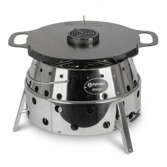 In der Mitte können einfach Holz oder Kohle beim laufenden Betrieb nachgefüllt werden; die Atago Grillplatte wird schnell auf Temperatur gebracht. Durch das steckbare Trägergestell und ihre flache Ausführung wird sie einfach im Van oder Camper verstaut und bietet vielfältige Einsatzmöglichkeiten für unterwegs. Grillgerichte gelingen dank optimaler Hitzeverteilung und idealem Garergebnis mühelos. Dank der Henkel lässt sich die Petromax Grillplatte gut transportieren und ein Wechsel zwischen Plancha-Station und raucharmer Feuerstelle ist mit einem Handgriff möglich. Die einfache Reinigung der Platte am Ende eines Grillabends erleichtert nach dem Koch-Abenteuer den ungetrübten Blick ins Feuer.