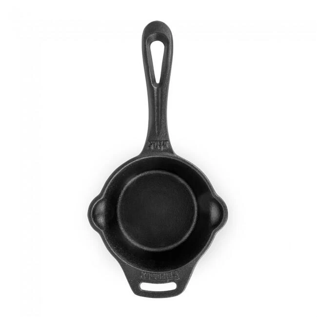 Der Petromax Saucentopf erleichtert das Ansetzen von Mehlschwitzen, Fonds oder anderen Saucengrundlagen in deiner Draußen-Küche dank seiner handlichen Form mit Stiel. Auch für das Schwenken von geschmorten Zwiebeln oder das Zubereiten von brauner Butter ist der Saucentopf ideal. Auch kleine Mahlzeiten können darin in Portionsgröße erwärmt werden. Auf intensiven Geschmack und echten Charakter kannst du dabei zählen, denn dank des Gusseisens bekommt auch der kleinste Sattmacher eine besonders charakteristische Note. Die wärmespeichernden Eigenschaften halten deine Sauce oder Zwischenmahlzeit noch lange nach dem Entfernen der Hitzequelle warm und die Ausgießhilfe ermöglicht dir zielsicheres Servieren.