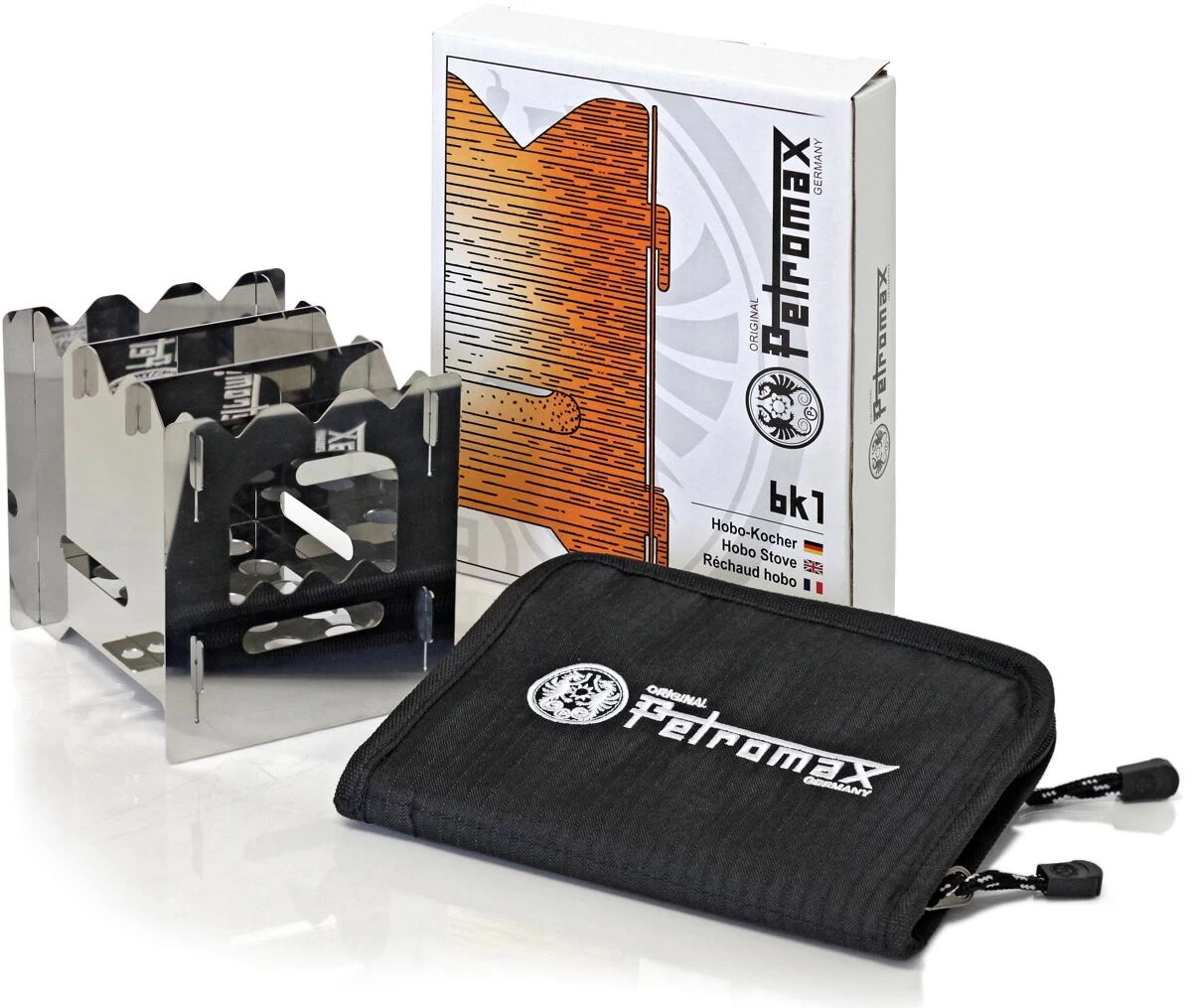 Ein leichter und effizienter Outdoorkocher für unterwegs, der in einer robusten Transporttasche aus Ripstop-Gewebe geliefert wird. Weil seine Konstruktion den Kamineffekt optimal ausnutzt, werden Zweige und Äste sparsam, aber dennoch enorm heiß verbrannt. Der aus Edelstahl gefertigte Hobo-Kocher ist zudem äußerst widerstandsfähig: Töpfe jeder Größe und jeden Gewichts trägt er sicher. Zusammengebaut wird der Kocher mit einem simplen Stecksystem, wodurch sich die Einzelteile optimal in der flachen Tasche verstauen lassen.