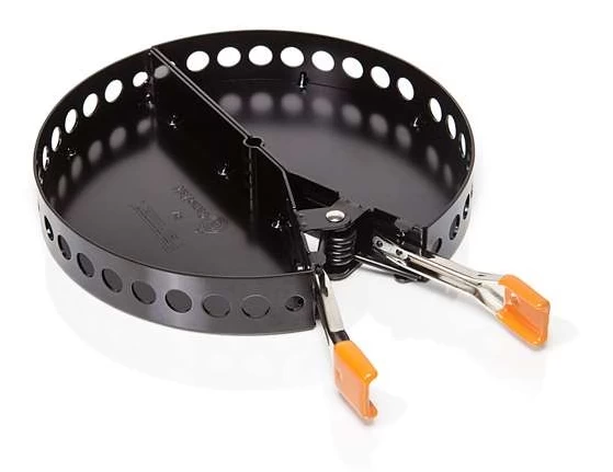 Kohleschale in Kombination mit dem Feuertopfdeckel Wird die Kohlenschale an den Haken des umgedrehten Deckelhalters pro-ft geklemmt, kann der Feuertopf-Deckel wie eine Pfanne benutzt werden. Die Hitze der Pfanne kann individuell reguliert werden, denn die Kohlenschale lässt sich in verschiedenen Höhen anbringen.