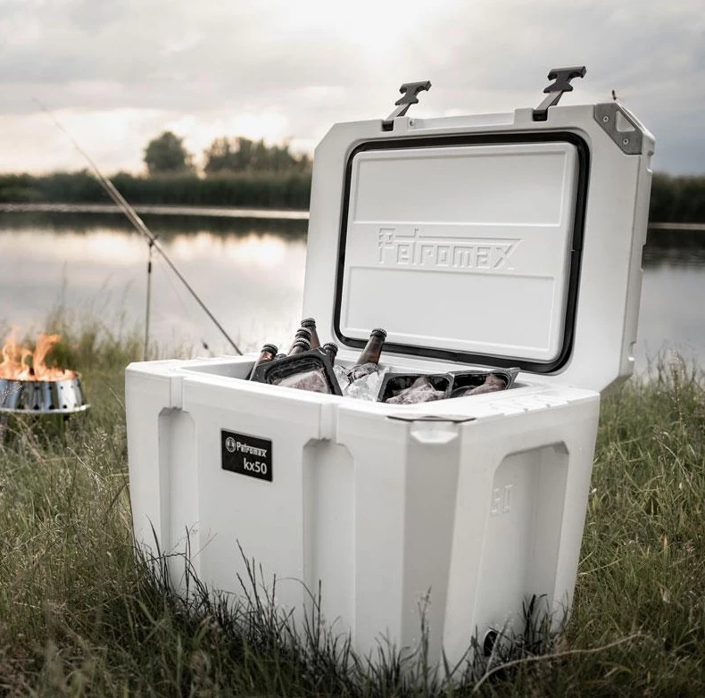 Unschlagbarer Vorteil: Der Innenraum der kx50 ist so konstruiert, dass bei 50 l Volumen bis zu 70 x 0,33 l Dosen oder 20 x 1 l Flaschen aufrecht verstaut und transportiert werden können. Auch fangfrischer Fisch oder mitgebrachter Proviant finden in deiner Petromax Kühlbox ihren idealen Aufbewahrungsort.