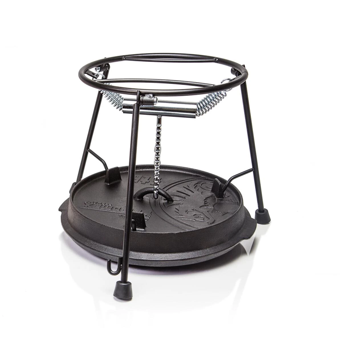 Der Deckelhalter ‚pro-ft‘ greift den Deckel samt darauf liegenden Briketts und lässt ihn erst wieder los, wenn es gewünscht ist. So wird der massive Gussdeckel leichter zu handhaben und das Essen kann indes umgerührt, gewürzt und abgeschmeckt werden ohne dass Schmutz auf die Deckelinnenseite gelangt. Der dreibeinige Deckelhalter dient zudem als Servierstand für den Petromax Feuertopf. Der Deckelhalter ft ist optimal für die Feuertöpfe ft6 bis ft12 geeignet und kann zusammengeklappt in einem Petromax Feuertopf ft6 transportiert werden. Mit den weiteren Produkten aus der pro-ft Serie kombiniert fungiert der Deckelhalter u.a. auch als Grillstelle, Räucherstand oder Kochstelle, indem der Gussdeckel des Feuertopfes umgedreht als Pfanne genutzt wird.