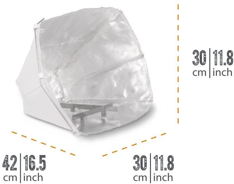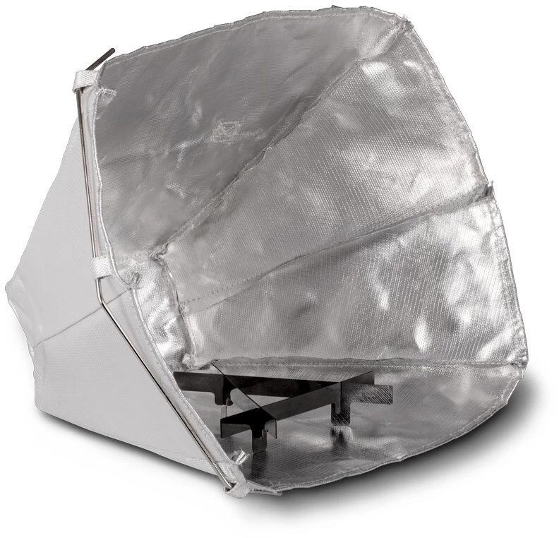 Mit dem faltbaren Reflektorofen ist man leichtgewichtig unterwegs. Der kompakte Ofen lässt sich leicht aufbauen und ermöglicht Kochen und Backen mit indirekter Hitze. Wenn das Lagerfeuer prasselt oder die Kohlen noch glühen, wird der Reflektorofen auseinandergefaltet und mit den Stangen aufgebaut. Das Ablagegestell bietet ausreichend Platz für einen Feuertopf bis Größe ft4.5 oder Deckel, Schmiedeeiserne Pfannen, Muffinform oder anderes Kochgeschirr. Das Gestell sorgt für die notwendige Unterhitze. Im Reflektorofen wird die Wärme des prasselnden Feuers reflektiert und im Inneren gespeichert. Ober- und Unterhitze lassen die Speisen perfekt durchgaren, während der Lagerfeuerkoch jederzeit den Garzustand des Gerichts im Blick hat. Wenn man das Kochgeschirr dreht, gelangt mehr oder weniger Hitze an das Gericht. Kekse, Brötchen, Kuchen, Kaninchen, Geflügel oder Überbackenes – der Reflektorofen ist der leichtgewichtige, schnell aufgebaute und vielseitige Begleiter für jedes Abenteuer.
