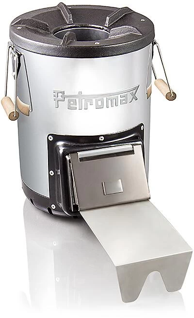 Der Kocher Petromax RF33 kombiniert in der Brennkammer einen wirkungsvollen Kamineffekt mit dem Holzvergaser-Prinzip. Durch die optimale Luftzufuhr wird eine effiziente Verbrennung gewährleistet. Der geringe Verbrauch von Brennmaterial ist perfekt für die Outdoor-Küche geeignet und schont Ressourcen. Der RF33 ist einfach und schnell angeheizt, so macht es Spaß auf Holz zu kochen und zu braten. Auf dem gusseisernen Oberteil des Raketenofens finden kleine Feuertöpfe (empfohlen ft3 und ft 4,5 ohne Füsse) oder Guss- und schmiedeeiserne Pfannen Platz.