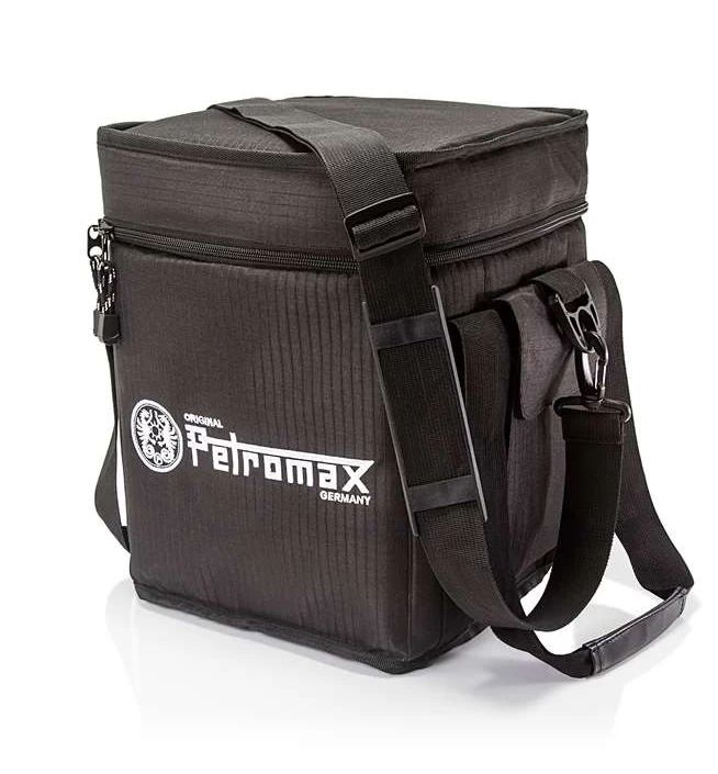 Die Tasche bietet mit verstärkten Wänden und Boden eine sichere Lösung für den Transport des Raketenofens rf33. Zusätzliche Stabilität bringt das robust gepolsterte Ripstop-Gewebe mit aufgesticktem Petromax-Logo. Die beiden Henkel und der abnehmbare Schultergurt sind gesondert verstärkt und gewähren bequemen Tragekomfort. Zubehör kann in Netztaschen im Deckelinneren oder den Außentaschen mit Klettverschluss untergebracht werden.