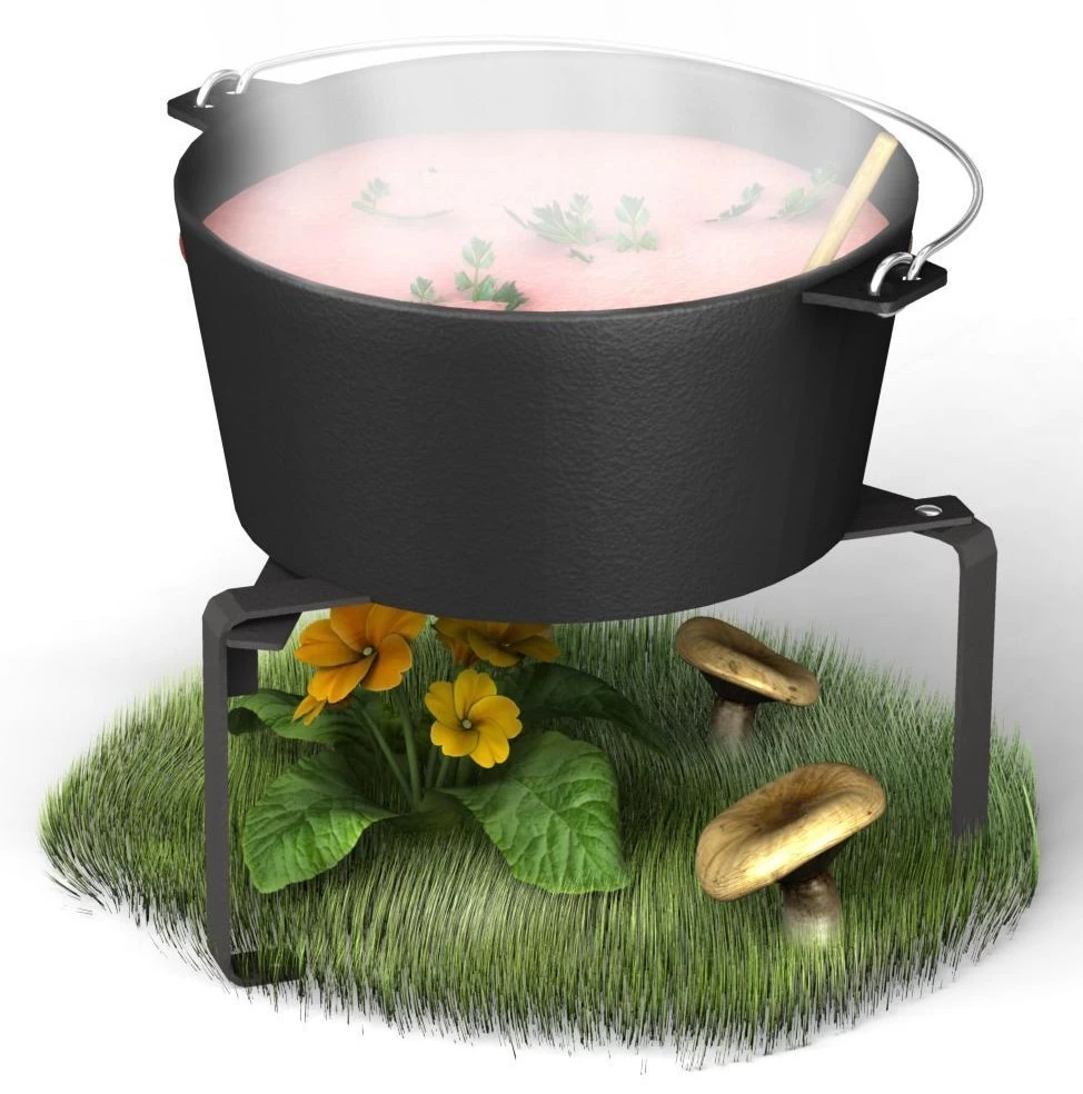 Der aus Stahl gefertigte Petromax Pfannenknecht ist die perfekte Ergänzung für jede Outdoor-Küche. Er eignet sich als sichere Ablagefläche für schwere Pfannen und Töpfe und macht aus einer normalen Feuerstelle eine solide Kochstelle. Dank der Löcher in jedem Fuß lässt sich der Pfannenknecht mit Zeltheringen im Boden befestigen. Wacklige Konstruktionen in der Outdoor-Küche gehören mit dem Petromax Pfannenknecht der Vergangenheit an!