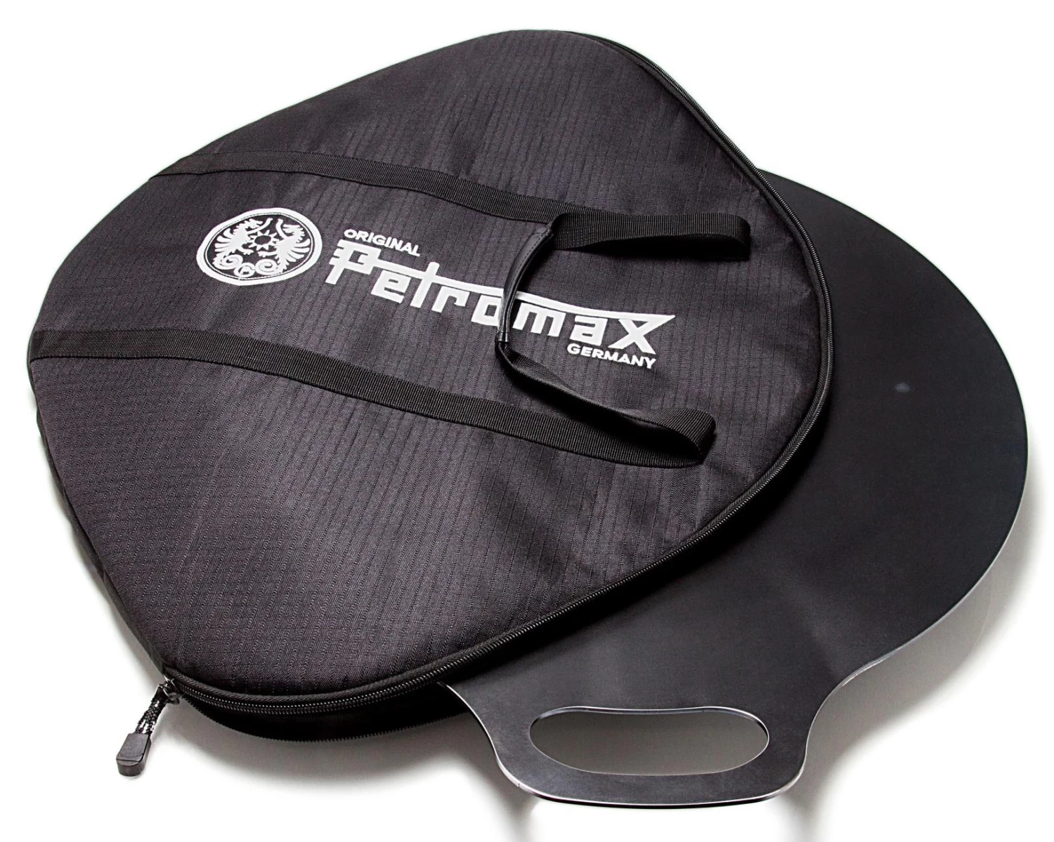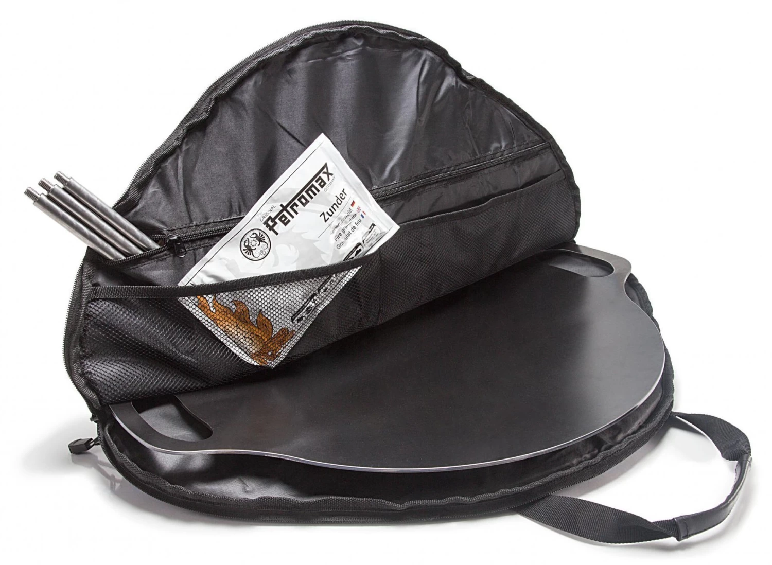 Transporttasche für Grill- und Feuerschale fs48 – In dieser Tasche wird die Petromax Grill- und Feuerschale fs38 schnell und einfach verstaut. Auch ihre abschraubbaren Füße finden in einem separaten Reißverschlussfach Platz. Weiteres Zubehör kann in den innenliegenden Netztaschen untergebracht werden. Höchstmögliche Stabilität garantiert das gepolsterte Ripstop-Gewebe mit aufgesticktem Petromax-Logo. Die Henkel sind gesondert verstärkt und bieten bequemen Tragekomfort.