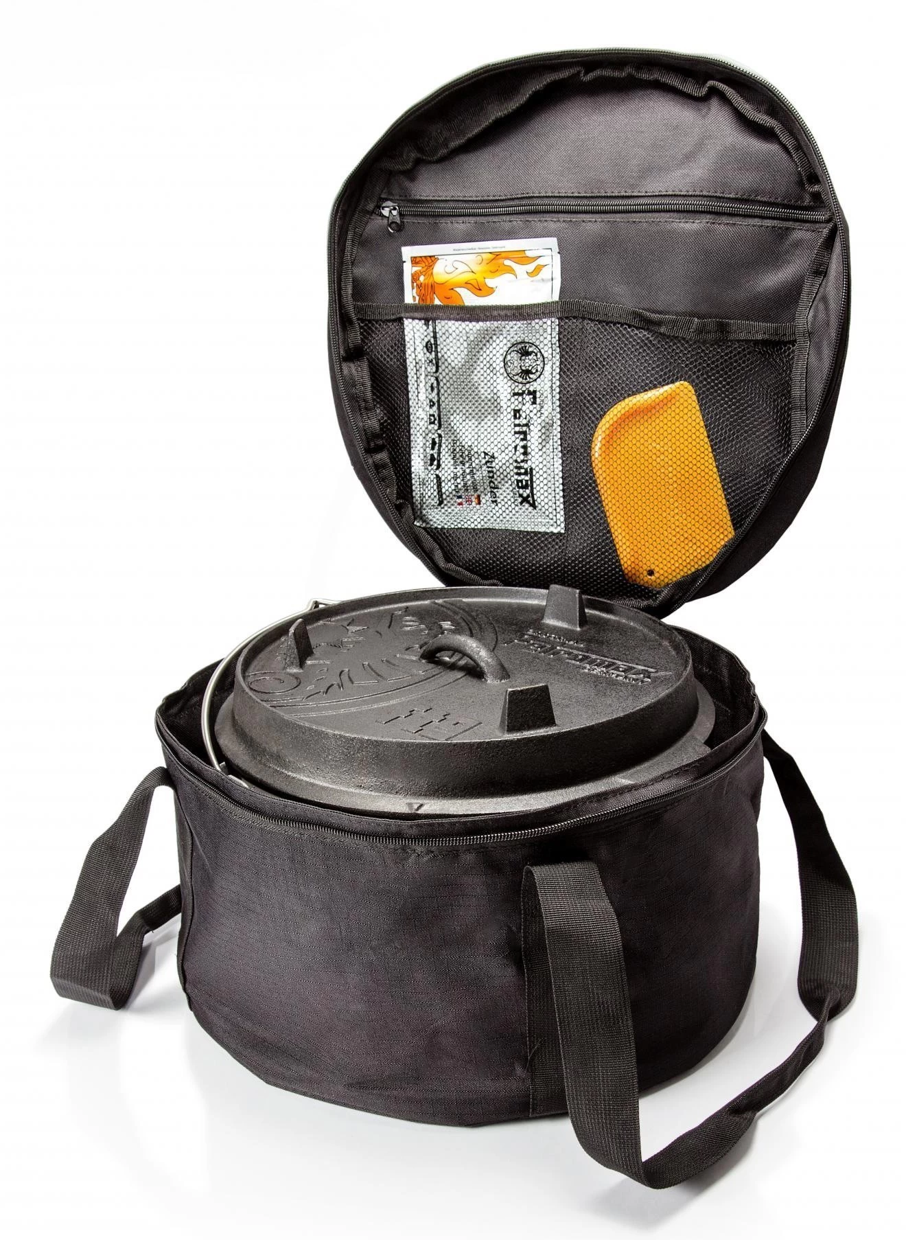 Transporttasche für Feuertopf ft4.5 – Die originale Petromax Feuertopf-Tasche ist eine hervorragende Transport- und Aufbewahrungsmöglichkeit für den Petromax Feuertopf ft4.5. Mit dieser Tasche erhält der Feuertopf eine sichere Lagermöglichkeit und lässt sich einfach zum Camping, zu Freunden oder in den Urlaub mitnehmen.